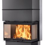 La porte vitrée en façade et sur les côtés offre une vue à 180° sur les flammes. Elle coulisse vers le haut pour recharger facilement le foyer. Pour l’entretien, les vitres latérales peuvent s’ouvrir après déblocage de la sécurité. Habillé de pierres réfractaires, et doté de la post-combustion, le foyer Bayard 80 délivre un rendement élevé et de hautes performances environnementales. Grâce aux kits optionnels proposés, l’air chaud peut être distribué dans toute la maison au choix par convection naturelle ou forcée.