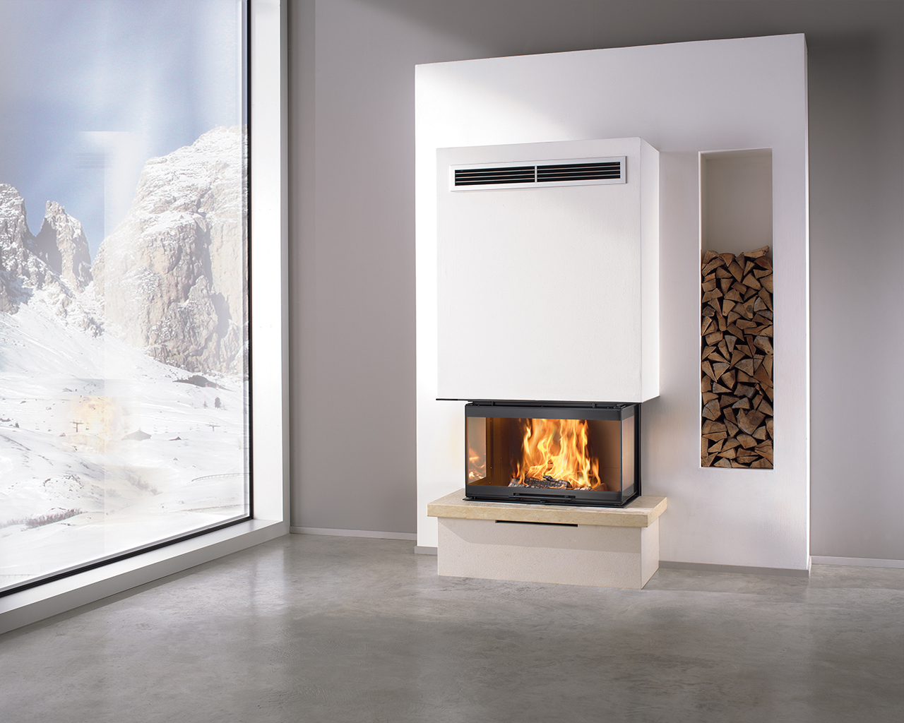 - Ce foyer extra-large au design minimaliste accueille de grandes bûches et renforce la fascination exercée par…
