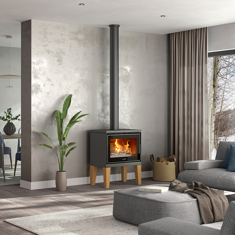 Avec sa silhouette épurée et ses pieds en bois naturel, le poêle à bois Sarra apporte une touche nordique et zen à votre intérieur. Véritable allié d’une décoration apaisante, il réunit performance thermique, faible impact environnemental et esthétique chaleureuse.